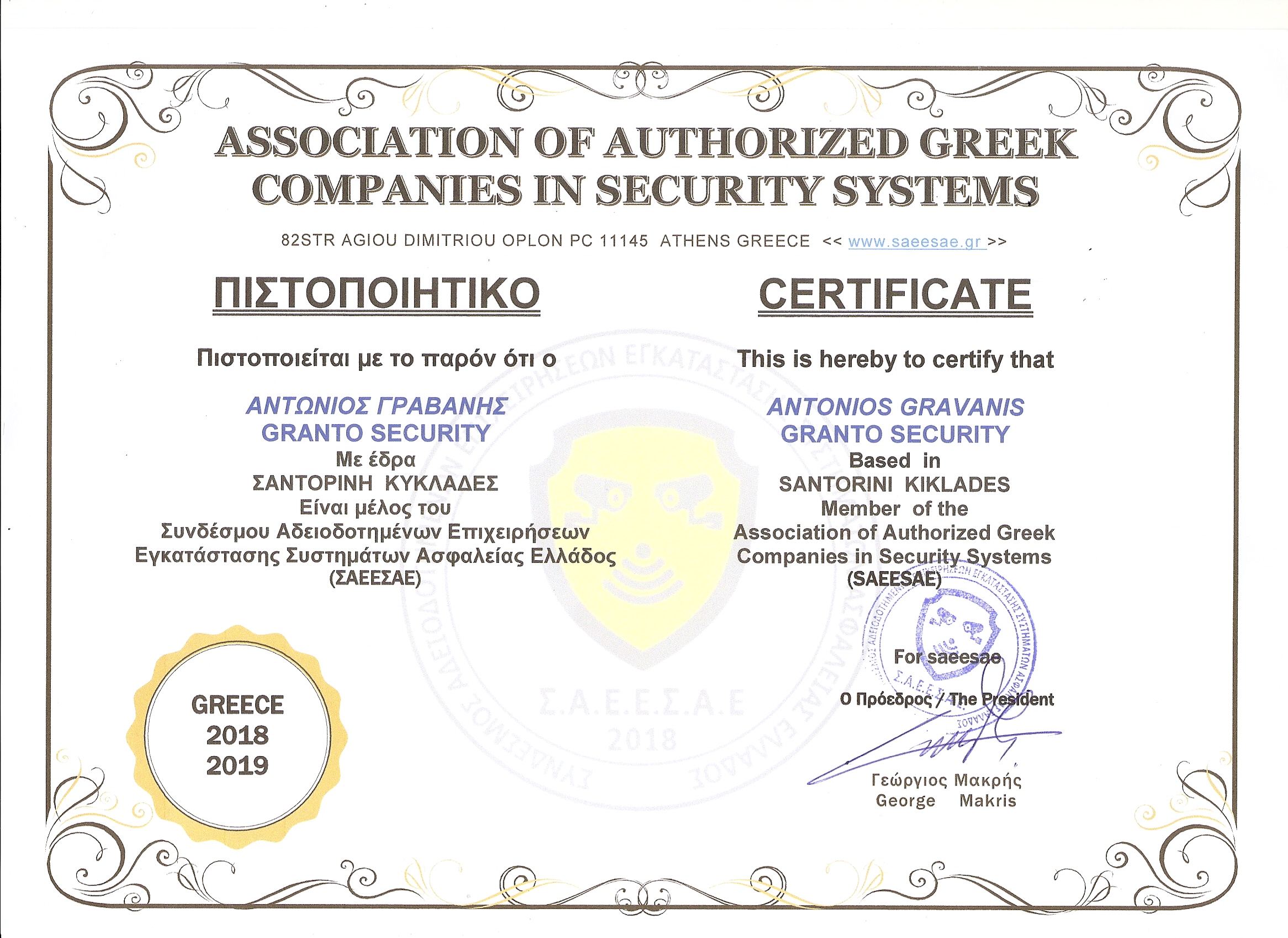 By admin / Uncategorized / Σ.Α.Ε.Ε.Σ.Α.Ε. / 0 Comments 16 Οκτ 03/09/2020 ΜΕΛΟΣ Σ.Α.Ε.Ε.Σ.Α.Ε. Επίσημα πλέον η GRANTO Μέλος του Σύνδεσμος Αδειοδοτημένων Επιχειρήσεων Εγκατάστασης Συστημάτων Ασφαλείας Ελλάδος.